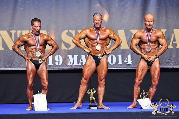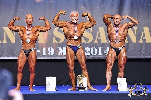 Bodybuilding +65 år: Willi Neubauer, Tyskland (2:a) Rafael Vera, Spanien (1:a) och Nico Lundholm (3:a).