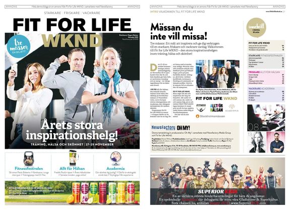 Om du undrar över vad inspirationshelgen på Stockholmsmässan innehåller får du en utmärkt överblick i denna bilaga som medföljer Dagens Nyheter i söndags. De tre mässorna Fitnessfestivalen, Allt för Hälsan och Acadermia samlas nämligen under ett tak.