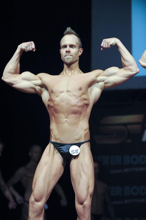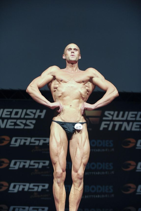 12 fördömda män, typ. Tidigt stod det klart att den som var allra bäst var Christopher Grenzdörfer. Komplett, med bra hårdhet, grymma ben och med bra satta poseringar. Grattis! Christian Andersson var en annan tidig favorit. Mycket bra ram, och med det grymma förutsättningar. Kunde dock ha varit hårdare. Tim Hågebrand tog bronset, och det var med mersmak i mina ögon. Bra linjer och bra hårdhet. Aningen ”onöjd” i uttrycket var nog det enda negativa.