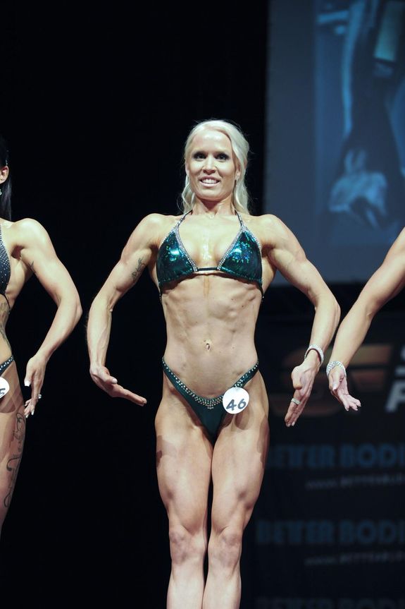 Att vi svenskar, till skillnad från exempelvis spanjorer, inte är av generellt jockeysnitt bevisades här då den längsta av BF-klasserna också var den största. Hela 10 tjejer klev upp och merparten av dem var riktigt bra. Segrade gjorde Nathalie Djurstedt Niska, som kom upp rejält atletisk och ordentligt genomtränad. En fröjd i mina ögon. Tvåa blev vackra Linda Elfving som definitivt har en ljus framtid inom sporten. Lite bättre ben och baksida så kan hon platsa på en SM-scen. Anja Ahnberg knep bronset, och även Anja var grymt bra. Kanske snäppet för hård, men det är isf angenäma problem. Grymt bra!