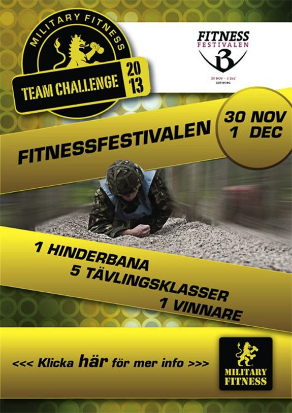 Under Fitnessfestivalen kan du och en kompis tävla i ett lag mot likasinnade på exakt samma hinderbana som använts på SM i Athletic Fitness. Tävlingen heter Military Fitness Team Challenge, det är kostnadsfritt att delta men antalet platser är begränsat, så anmäl dig snarast!