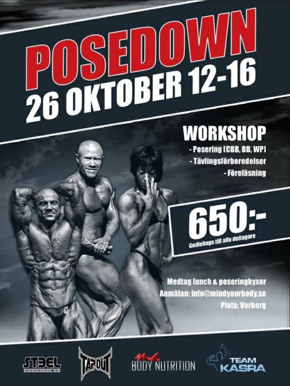 Den 26 oktober avhålls ett seminarium i Varberg av intresse för dig som har, vill eller ska tävla i framtiden inom BB, CBB eller WP. Rebecca och Patrik Kasra håller i posering, Anders och Mia Lundgren föreläser om mentala förberedelser, hur man tacklar tiden efter tävling och hur man vårdar och lyssnar på sin kropp.
