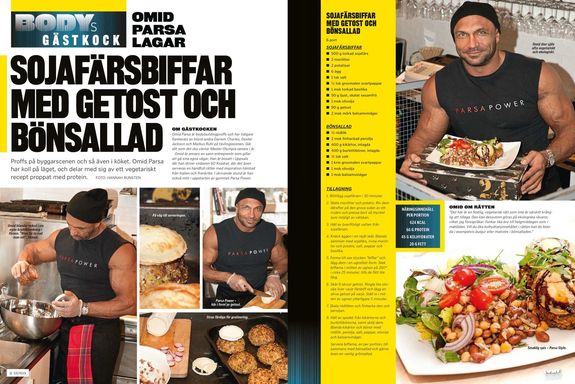 Privilegiet visar ibland sitt vackra ansikte. Vi fick förmånen att träffa den unge och ambitiöse Elvis Omerovic, och fick hänga med på ett pass för axlar och triceps. Vem vet vart det leder? Elvis själv har i alla fall siktet klart: Las Vegas. - 36. BODYs Gästkock: Omid Parsa lagar Sojafärsbiffar med getost och bönsallad