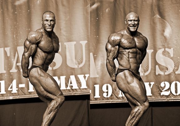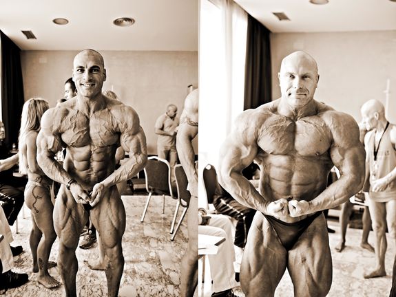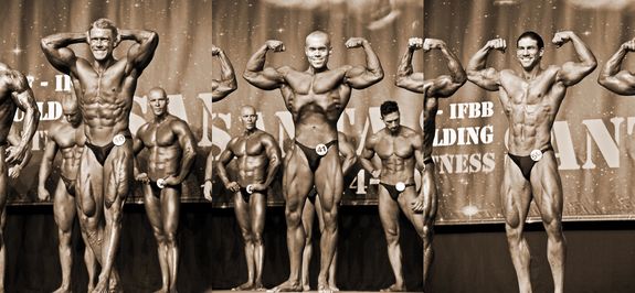 Så kunde vi äntligen komma igång med själva tävlandet. Torsdagens förmiddagspass utgjordes av Classic Bodybuilding i fem olika längdklasser: -168, -171, -175, -180 och +180. Våra svenska intressen koncentrerades till de två sistnämnda, där både Robert Bergh och Patrik Larsson tävlar i -180, och Chris Harnell i +180. Då de två första klasserna hade färre än 6 deltagare så ströks deras förbedömning helt (alla tävlande går ju ändå till final), vilket gjorde att Patrik & Robert skulle upp i dagens andra klass, och Chris i dagens tredje.