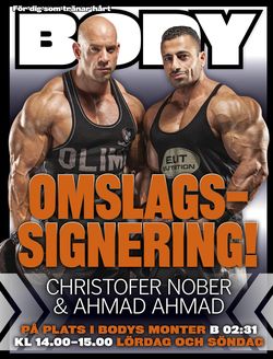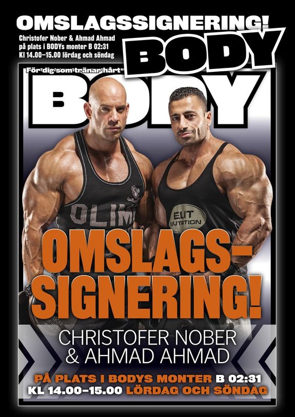 Lördag och söndag kommer Christofer Nober & Ahmad Ahmad hänga i BODYs monter och signera sitt decemberomslag – kom förbi! Dessutom är en av de 183 schemalagda programpunkterna på FitnessFestivalen presentationen av vinnarna i BODYs omslagsmodelltävling samt uppvisningen av det vinnande januariomslaget!