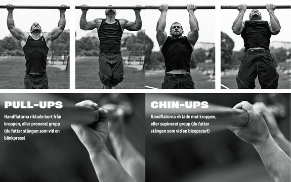 Vi hade inte skrivit om chin/pull-ups om inte det var suveräna verktyg för att addera kvalitetskilon till på ryggen. Övningen är betydligt mer utmanande än några halvsåsiga set i lat pulldown-maskinen. Men vi kan garantera att du även kommer märka av det på armarna, under förutsättning att du utför övningarna med ett progressivt tänkande och ständigt försöker öka i styrka, utan att offra gott utförande. Förutom att du blir starkare i ryggen kommer även din greppstyrka, något som varje seriös styrketränande har nytta av, att öka snabbt. Och alla ni där ute som utövar någon sport där greppet är viktigt – era böner har just blivit besvarade.