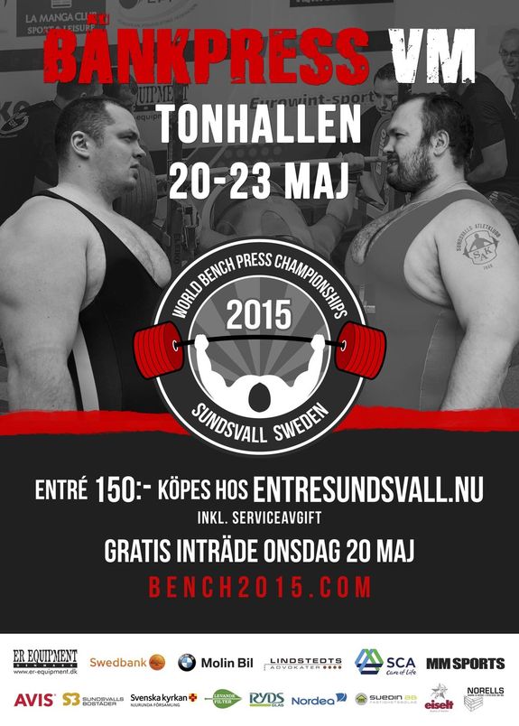 21–23 maj arrangeras VM Bänkpress 2015 i Sundsvall – utan tvivel Sveriges främsta bänkpress-stad. De som sitter på plats i arenan Tonhallen får sannolikt se ett gäng världsrekord slås! Köp dina biljetter här!