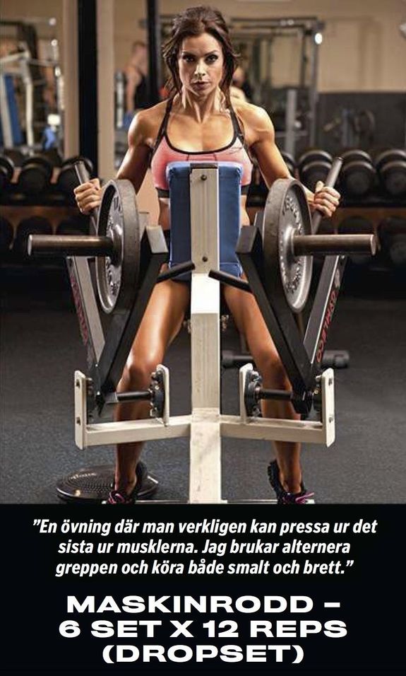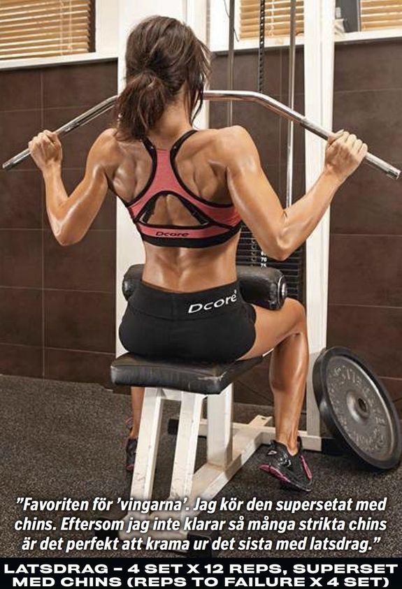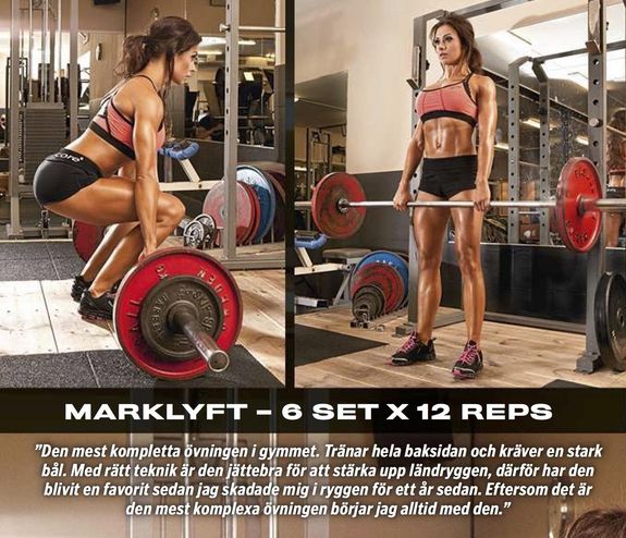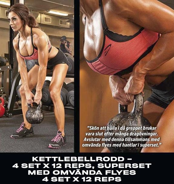 – Jag älskar att träna rygg och känner mig stark där. Därför är det just nu inte en prioriterad muskelgrupp. Men ett specifikt ryggpass i veckan blir det, plus att ryggen ju får sig extra omsorg med alla funktionella övningar under mina cirkelpass, noterar hon.