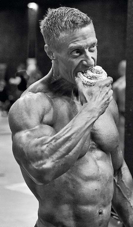 - När det är cirka 30–40 minuter kvar till scenen/fotningen bör du börja pumpa upp dina muskler främst på överkroppen. Push-ups, olika hantelövningar för axlar, armar och liknande rekommenderas.