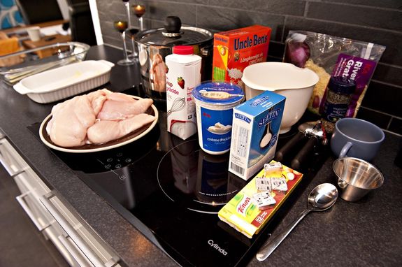- Salta kycklingen lite lätt och krydda med svartpeppar samt smula över köttbuljongtärningarna och pressa över vitlöken.