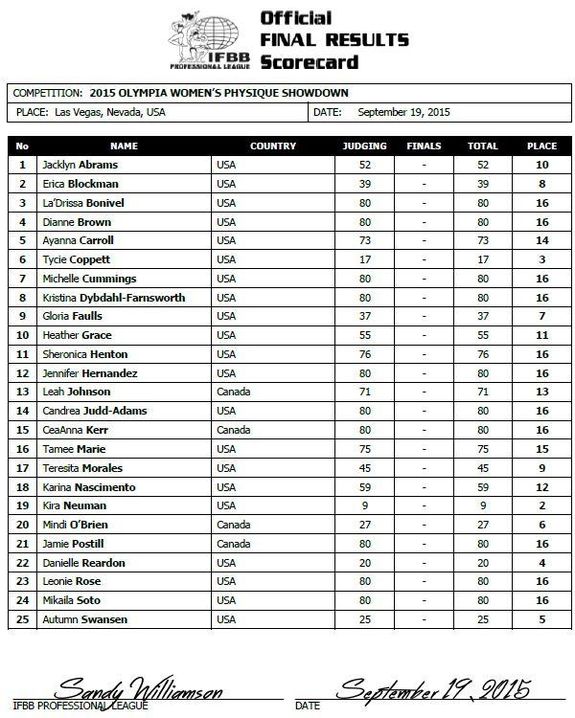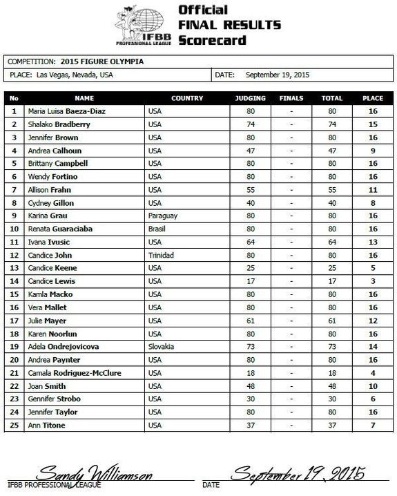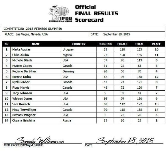 - Resultat Fitness Olympia