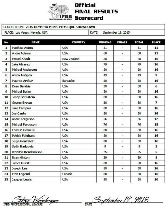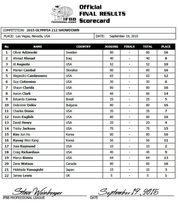 Resultat 212 Olympia Showdown 2015