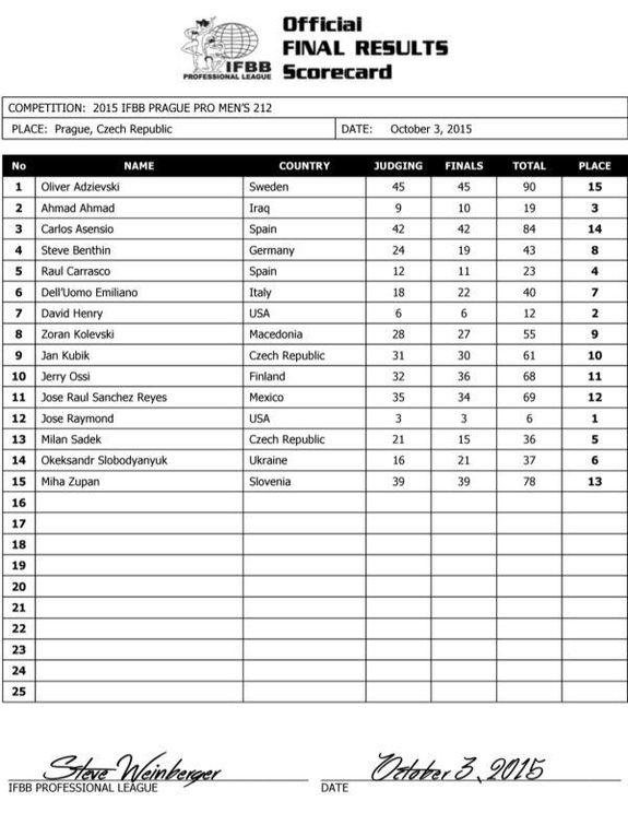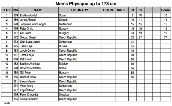 Resultat MP -178 cm Olympia Amateur Europe 2015