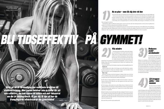 Brist på tid är förmodligen den vanligaste ursäkten till utebliven träning. Men passet behöver inte ta timtal för att vara effektivt, det kan rentav bli bättre och mer fokuserat om det är tidsbegränsat. Vi ger dig 10 tips på hur du framgångsrikt effektiviserar din gymvistelse! - 58. Träna tungt: juniormästarinnan visar vägen