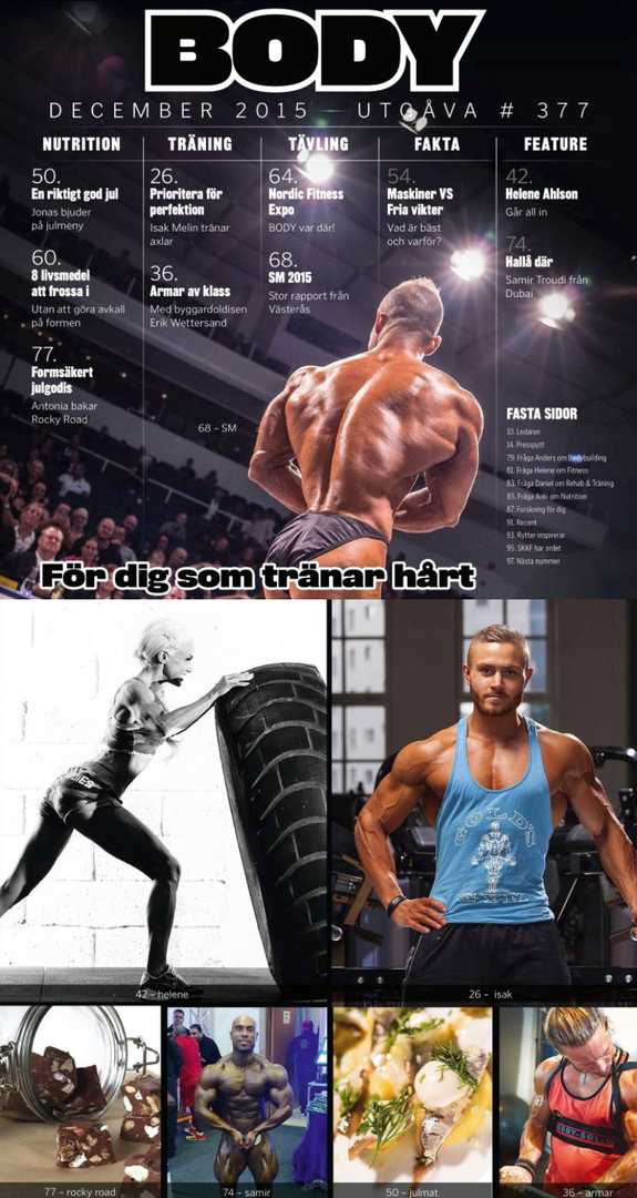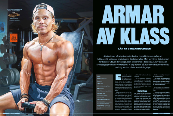 Atleter inom våra fysiksporter brukar i regel inte vara svåra att hitta och få veta mer om i dagens digitala myller. Men sen finns det de med färdigheter utöver de vanliga, som jobbar mer i det dolda. En av dessa är kroppsbyggaren Erik Wettersand. Vi tog honom på pulsen och lät honom dela med sig av sina bästa armträningstips. - 42. Helene Ahlson: Går all in För att kunna resa sig och växa ur motgångar krävs det en vilja, styrka och ett pannben utöver det vanliga. Någon som vet allt om det är Helene Ahlson.
