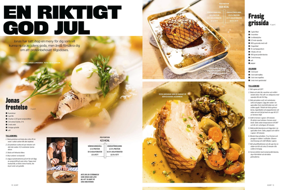 - 50. En riktigt god jul: Jonas bjuder på julmeny Jonas har satt ihop en meny för dig som vill kunna njuta av julens goda, men ändå försäkra dig om att proteinbehovet tillgodoses.
