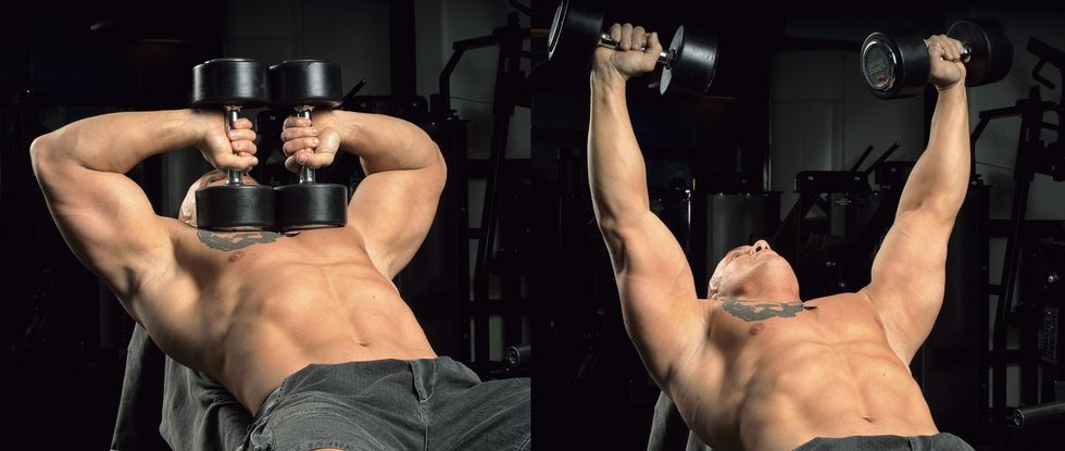 Den amerikanske demontränaren Jerry Telle är känd för att komma på nya och huvudvridande övningar. Och den kombinerade hantelflyen och -pressen är inget undantag. Du har säkert hantelpressat förut och kört hantelflyes tidigare, men nu är det dags att göra båda sakerna samtidigt.