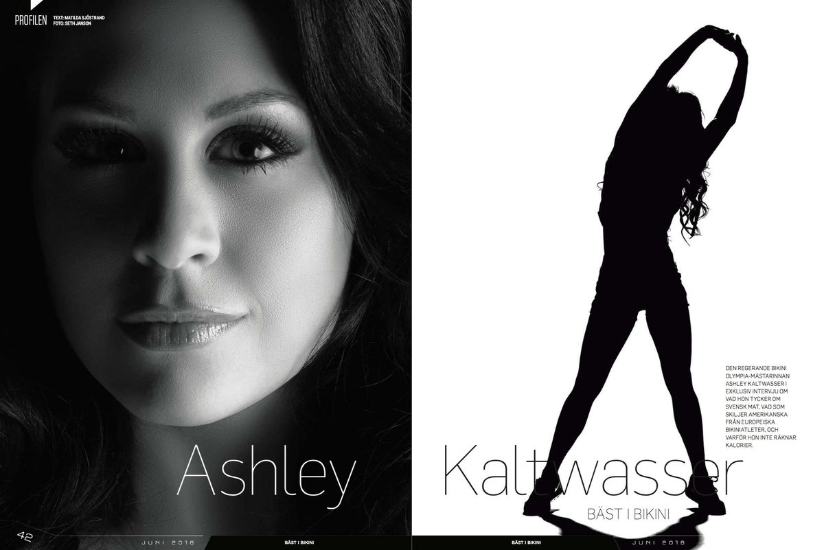 Den Regerande Bikini Olympia-mästarinnan Ashley Kaltwasser i exklusiv intervju om vad hon tycker om svensk mat, vad som skiljer amerikanska från europeiska bikiniatleter, och varför hon inte räknar kalorier. -
