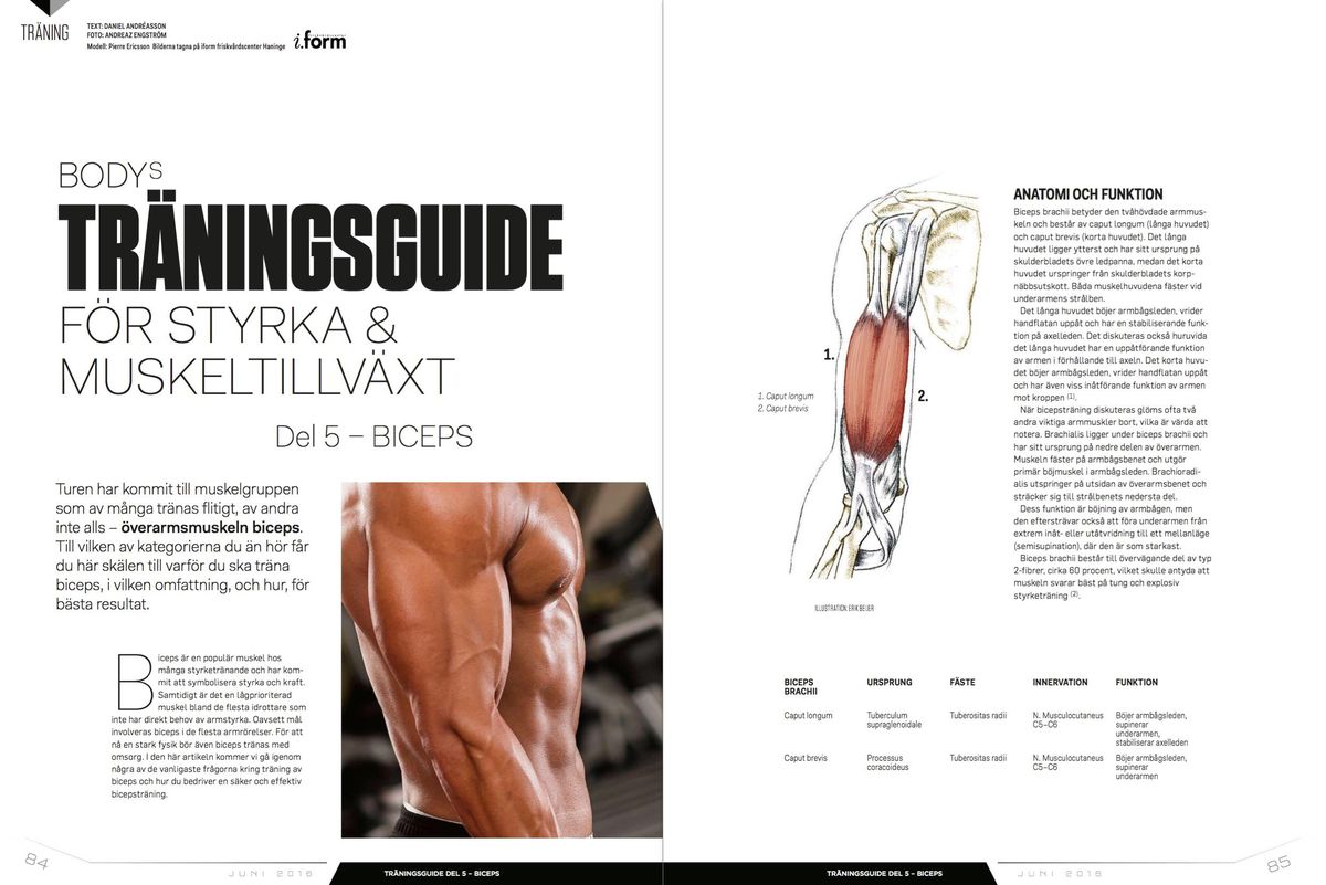 Turen har kommit till muskelgruppen som av många tränas flitigt, av andra inte alls – överarmsmuskeln biceps. Till vilken av kategorierna du än hör får du här skälen till varför du ska träna biceps, i vilken omfattning, och hur, för bästa resultat. -