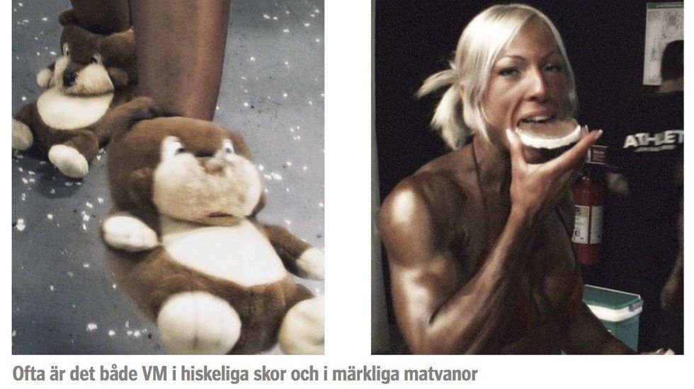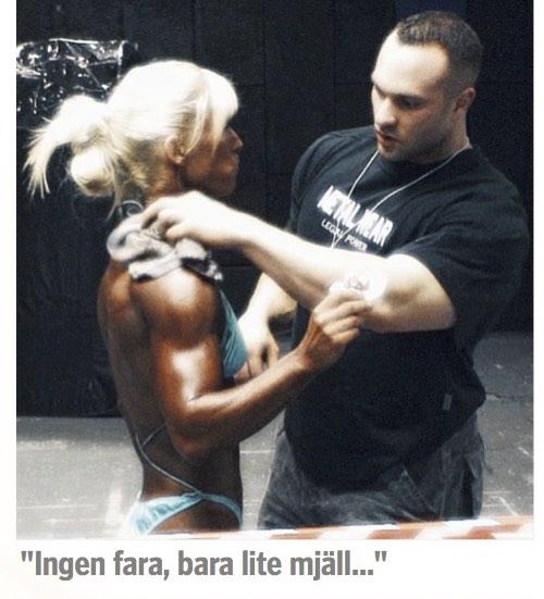 Atleterna vill tydligen även vara väl insmorda med något som är misstänkt likt det de smetar på frigoliten. Naken från flintskalle alternativt extensions till lilltå vill atleten att coachen ska endera smeka och smeta iförd gummihandske eller leka ”Extreme Makeover: Home Edition” med rollern. Huvudsaken att det blir brunt, på gränsen till svart.