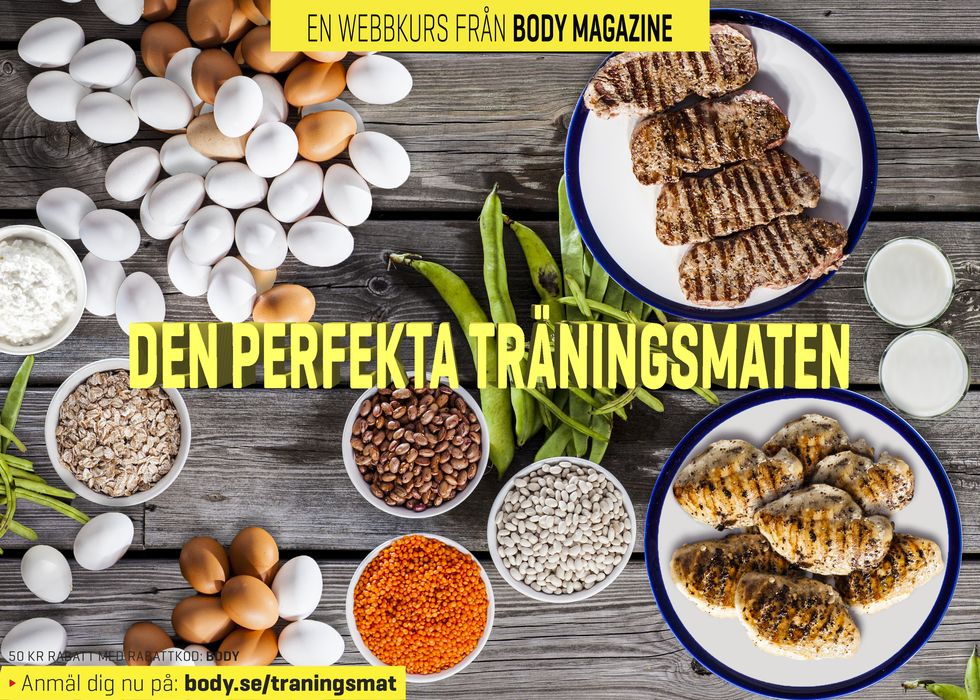 Använd rabattkoden BODY och få 50 kr rabatt hela november ut. Anmäl dig nu på body.se/traningsmat!