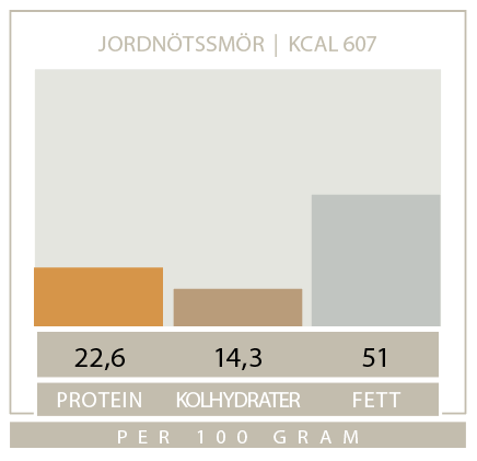 Jordnötssmör är ett mångfacetterat livsmedel på flera vis. Undertecknad gillar att krusidull-löst bara utrusta sig med sked och äta direkt ur burken. Men om du är lite mer sofistikerad och fantasifull än så kommer du under bulken kunna ha stor användning för jordnötssmör. Det går naturligtvis att likt Elvis Presley använda det som pålägg på mackan, men det är också en av de vanligast förekommande ingredienserna gällande hemmagjorda proteinbars och proteinpulversbaserade bakelser. Jordnötssmöret har annars samma fördelar som nötterna har i sig. Det är näringsrikt, energitätt och ett gott sätt att utöka sitt energiintag.