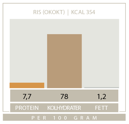 Bra kolhydratskällor är alltid viktigt för dig som tränar hårt och ris är kanske den mest klassiska av dem alla i byggarsammanhang. Till skillnad mot potatis, som också är en populär kolhydratskälla, innehåller ris betydligt mer energi. Okokt jasminris ligger på cirka 78 gram kolhydrater per 100 gram jämfört med potatisens 16 gram. En fördel med ris för dig som vill öka i vikt är dessutom att det inte mättar speciellt mycket jämfört med exempelvis potatis. Du kan på enkelt vis få i dig mycket energi med andra ord.