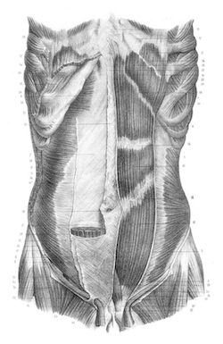I gruppen ingår de muskler vi instinktivt associerar med en stark och snygg torso, till exempel m. rectus abdominis (sexpacket) som är den ytligaste av dem och sträcker sig från bröstkorgen till bäckenet. Vid sidan av dessa åtråvärda rutor finner vi sedan de sneda bukmusklerna (obliques) som skapar inte bara ett komplett intryck utan också en funktionell och flexibel överkropp.