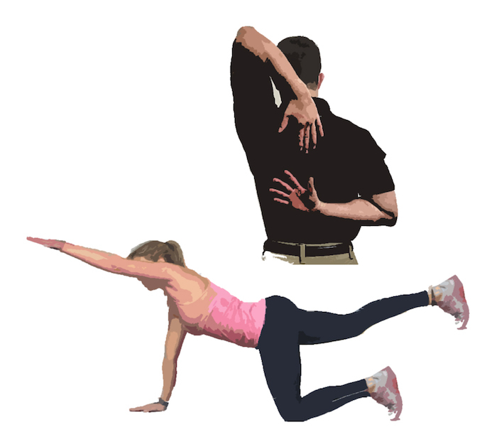 Intag armhävningsposition. Lyft simultant höger hand och vänster ben tills det att de är parallella med underlaget. Återgå kontrollerat till startposition.