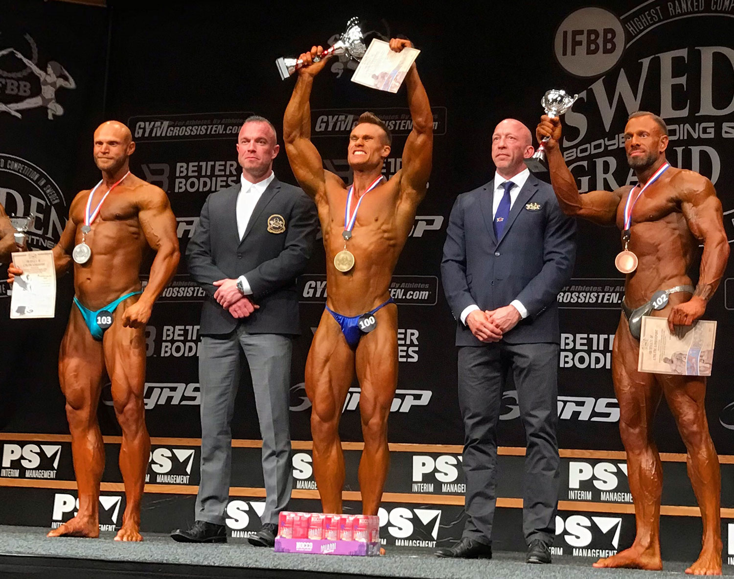 Segrade i Women’s Physique gjorde bredaste bruden Amela Bajramovic som precis landat efter FIBO i Tyskland förra veckan. Hon börjar bli en berest dam nu, då hon plockade upp ännu en flygbiljett till EM. Imponerade bland killarna gjorde Tobias Kempe som med en fin fysik och stor fräschör tog hem overallen i Classic Bodybuilding. I bikinifitness var de segrande nationerna spridda på Norge, Danmark och Ukraina men i -166cm lyckades Malin Månsson knipa guld på Sweden Grand Prix. Peter Österberg bjöd på ett i det närmaste poetiskt fritt program, där muskulaturen flödade under huden i perfekt kontroll. Som avslutning toppade han en spagat med ett välförtjänt brett leende som strålade av nöjdhet och rev ner applåder.