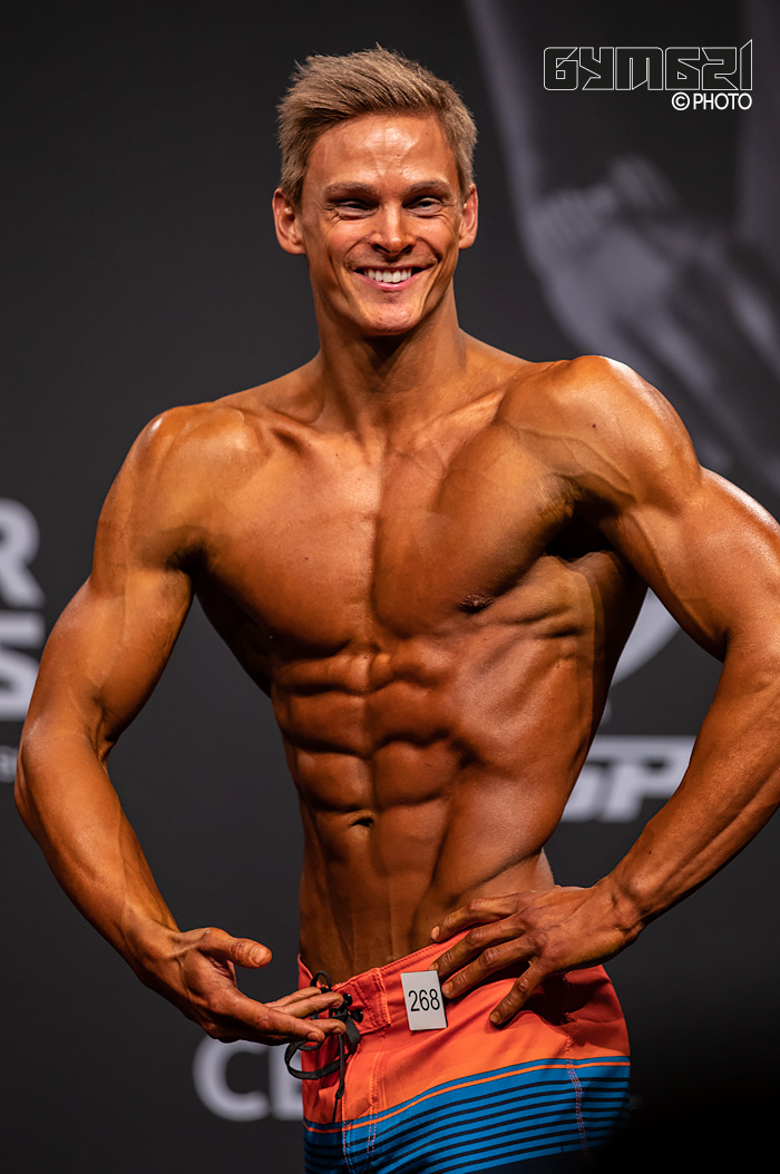 När publik och domare gjort sig redo för killarna i Men´s Physique var det dags för dagens stora överraskning, när Christofer Nober påades som gästposör. I påföljande intervjun erkände Christofer att han inte var det minsta nöjd med att ha missat overallen med en poäng i Budapest för några veckor sedan. Planen framöver är därför att lägga på sig, äta julmat och låta skinkan ladda med motivation för nya satsningar 2019.