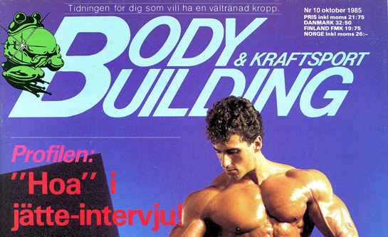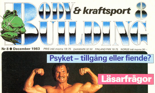 Tidningen heter BODYBUILDING & kraftsport, där ordet BODY står på egen rad, och kraftsport skrivs ut gement. Den gröna grodan är med från början. Metallicbokstäver används.