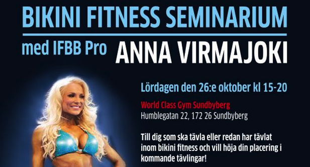Det finska IFBB-proffset Anna Virmajoki återkommer till Sverige – denna gång är det Xercise Härlöv i Kristianstad som står värd för seminariet lördag 19 april. Anna kommer att ge goda råd för de som vill tävla eller de som redan har tävlat i Bikini Fitness och vill förbättra sin placering i kommande tävlingar. Mer om […]